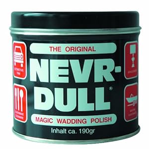 NEVR-DULL wirkt sofort und entfernt Rost, Verschmutzungen und Flecken. Kurze Zeit antrocknen lassen, bis sich ein leichter, weißer Film gebildet hat. Anschließend den Film mit einem weichen, sauberen und trockenem Tuch wegpolieren und das Metall glänzt wieder wie neu. Die Dose nach Gebrauch gut verschließen, damit die Polierwatte nicht austrocknet und ihre Wirkung verliert.